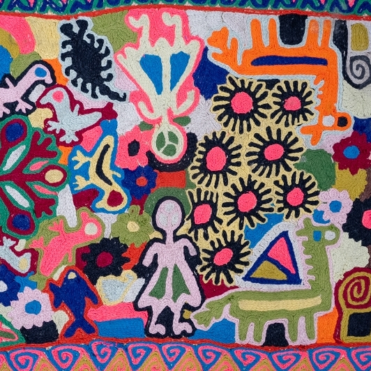 This particular izar was made by the Marsh Arabs the Maʻdan of southern Iraq. The Maʻdan izar is especially known for its distinctive bold, colourful, and symbolically expressive chain stitch that reflects the life, environment, and cultural identity of the Marsh Arabs.