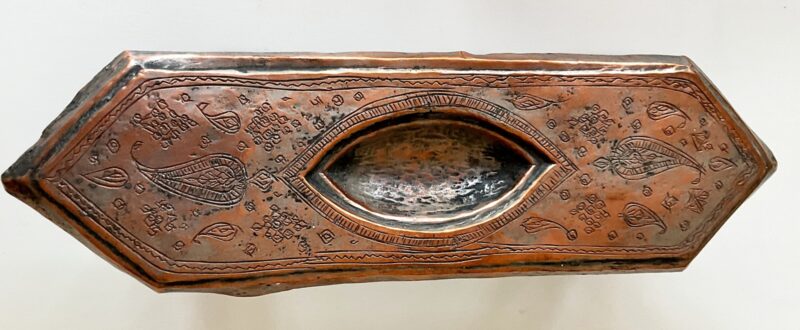 Silver and brass signified affluence, and their elaborate designs, often featuring intricate arabesque patterns, floral motifs, or calligraphy showcased the region’s rich artisan traditions and skills. Many of these containers were treasured possessions, passed down through generations as family heirlooms.
