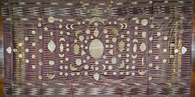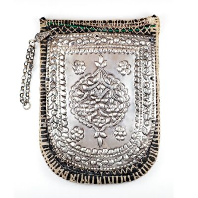 (17) Wrap W2. Iraq, 20th century, ca.1920-1940, Iraqi silver pieces and silk material from Syria.