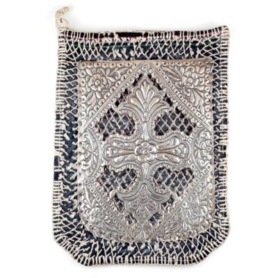 (09) Exfoliating Mitt EM2. front and back, Iraq, Karbala, 19th century, ca.1890, Iraqi silversmiths, silver and fabric.