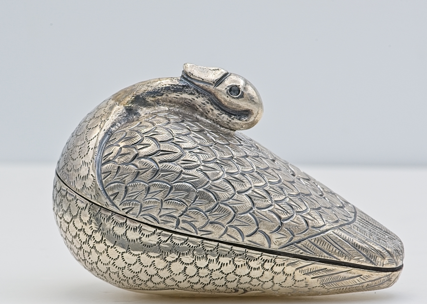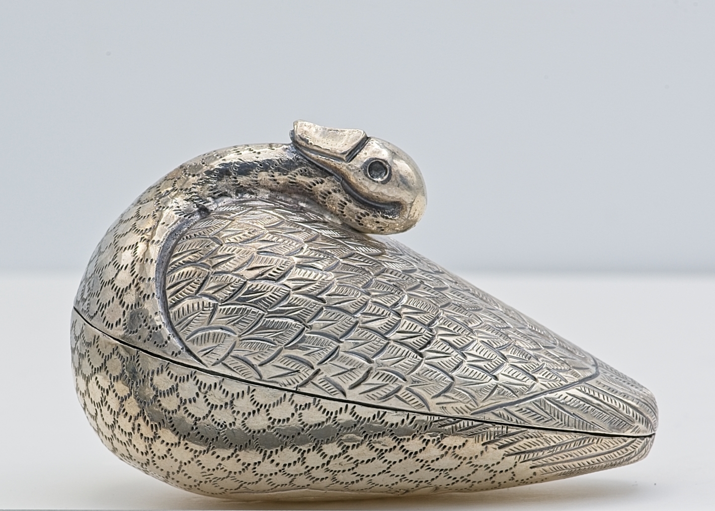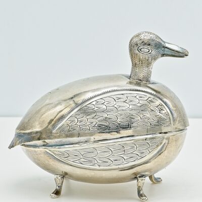 (06) Duck Shaped Container, D1. Iraq, 20 century, ca 1920. Iraqi Jewish silversmiths, silver.