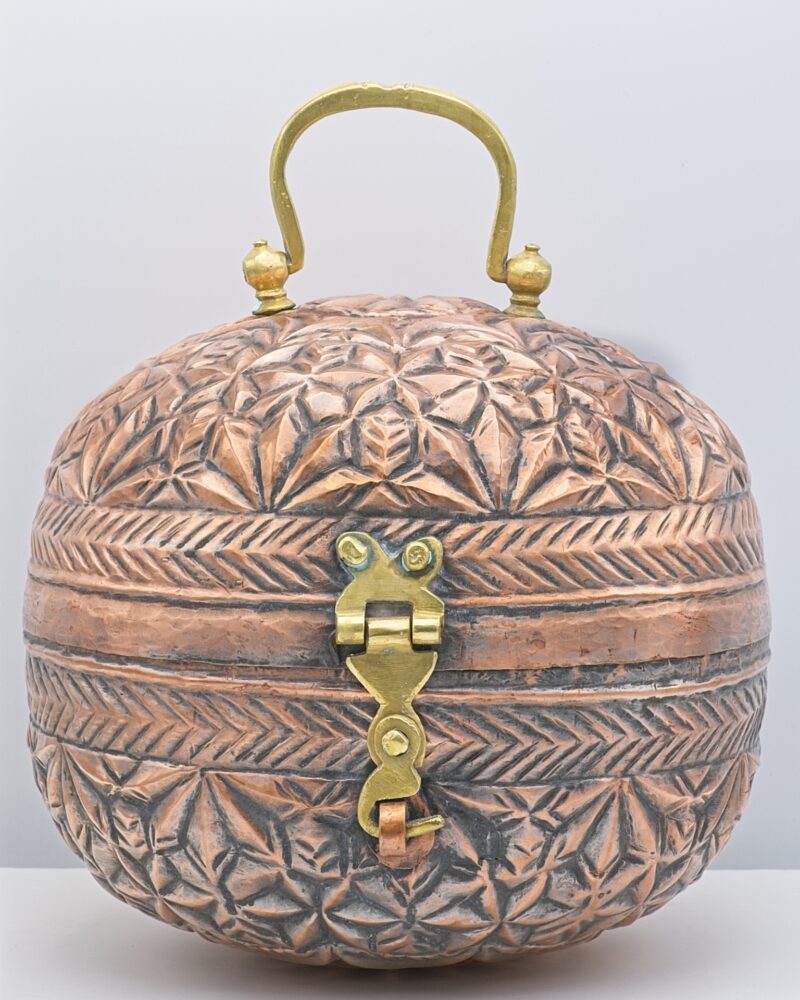 (51) Melon Shape Container M1. Iraq, Mosul, 20 century, ca 1900. Iraqi copper smith and brass smith, copper and brass.
