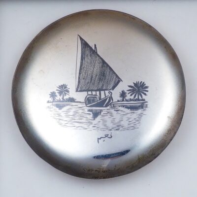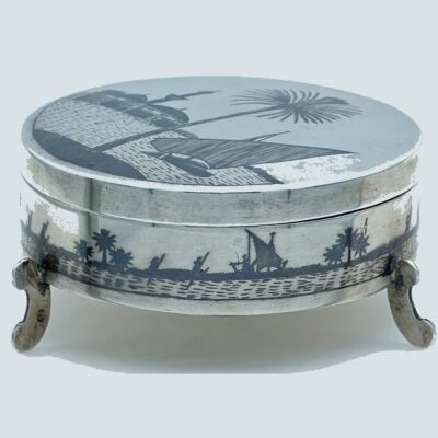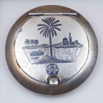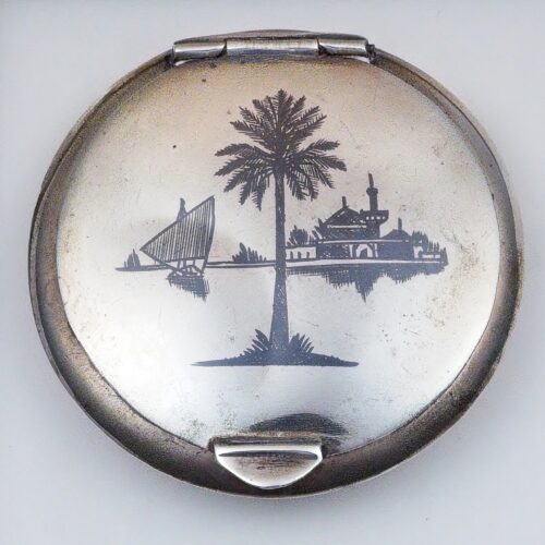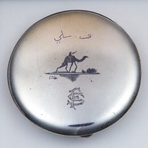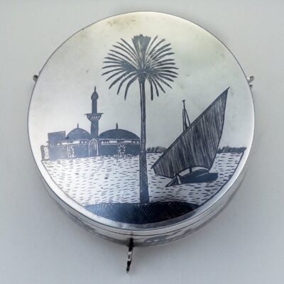 (44) Powder Container PC3. Iraq, 20th Century, ca.1950, Iraqi Sabaeans / Mandaeans, silversmith Salem, silver and Niello. (Private Collection – Barbara Porter).
