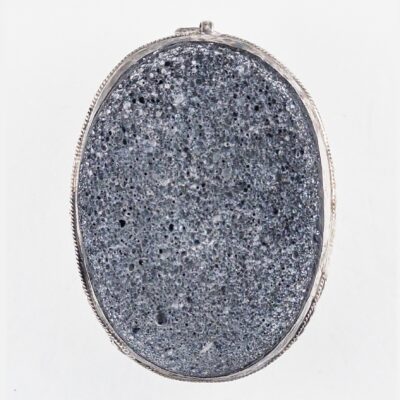 (11) Pumice Stone PC2, front and back. Iraq, 20th century, ca.1920, Iraqi Jewish silversmiths, silver and pumice.