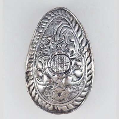 (10) Pumice Stone PC1. front and back. Iraq, 20th century, ca.1920, Iraqi Jewish silversmiths, silver and pumice.