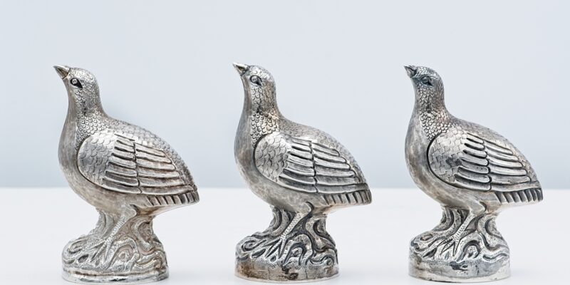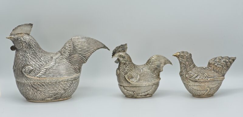 (52) Roosters R1 – R3, Thailand, 20th century, ca 1980, Asian silversmiths, silver.