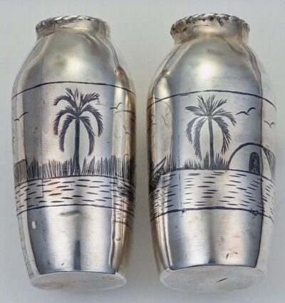 (46) Perfume Bottles S1, Iraq, 20th century, ca.1950, Iraqi Sabaeans / Mandaeans, silversmith Salem, silver and niello. (Private Collection – Barbara Porter)