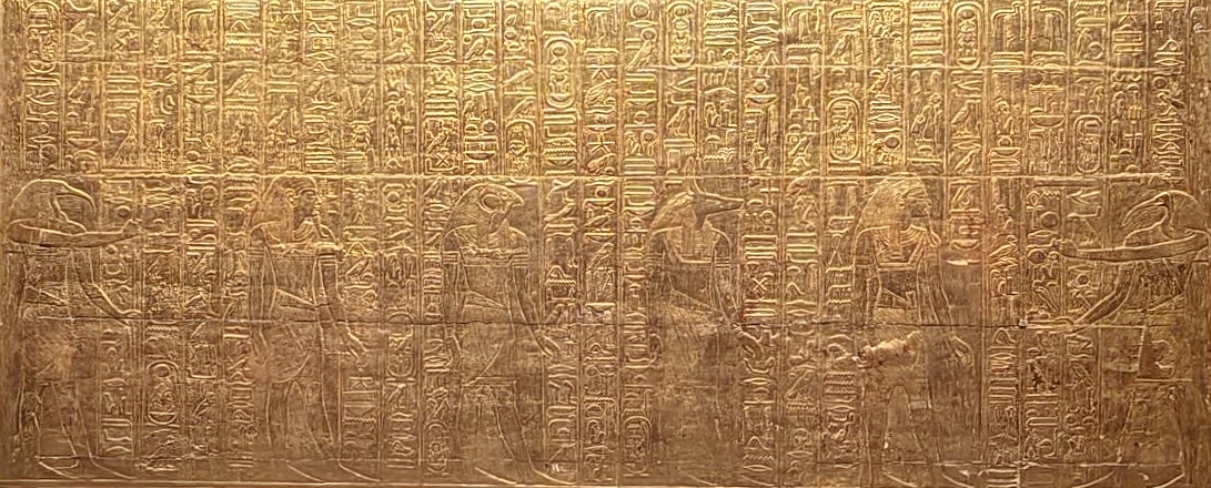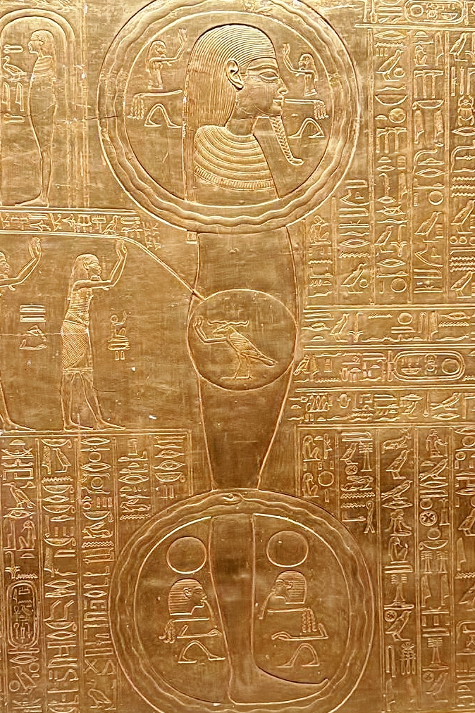 Fig 15) Second Coffin, the middle coffin. made of gilded wood and decorated with intricate details and protective deities.