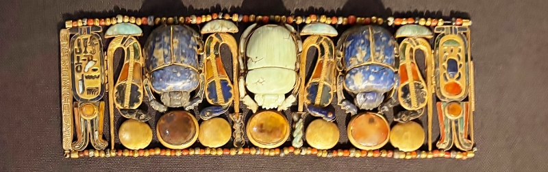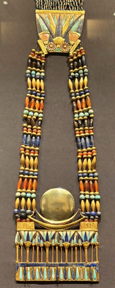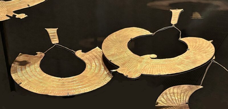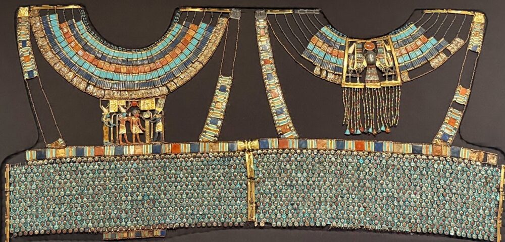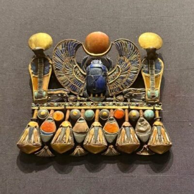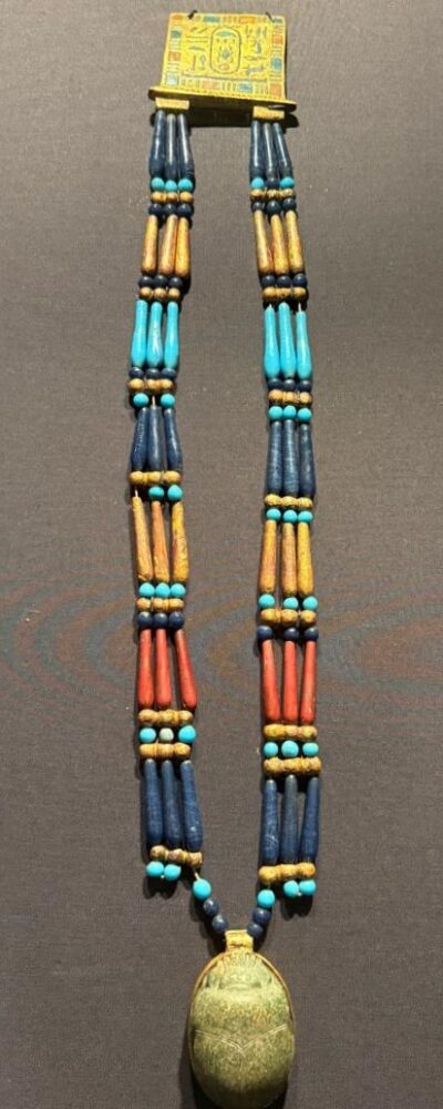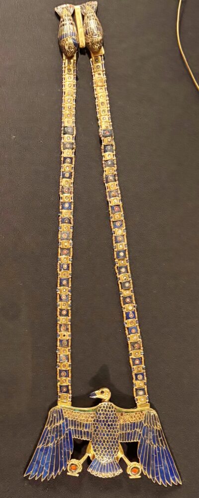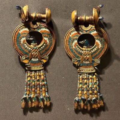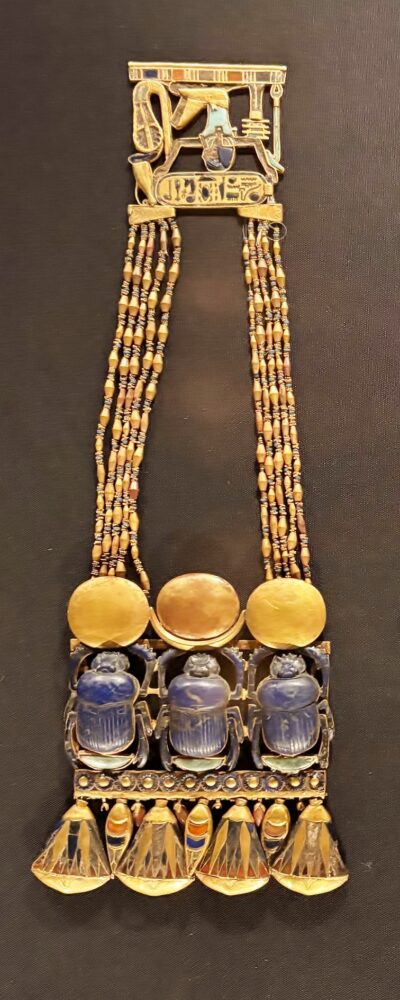 Some jewelry items were found on Tutankhamun’s mummy,  In addition to  many more pieces of jewelry were discovered stored in boxes and chests throughout the various chambers of his tomb.