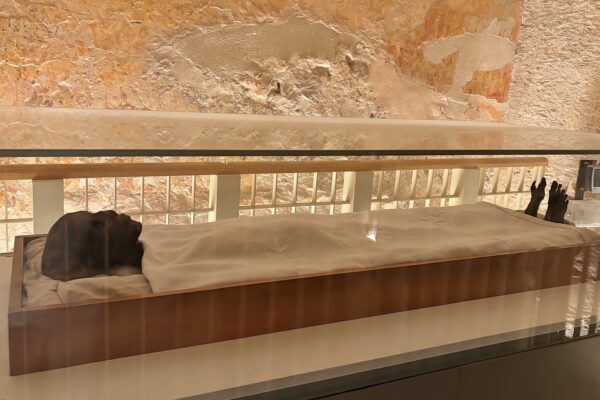 Fig 5) Tutankhamun’s mummy at tomb (KV62) in the Valley of the Kings.