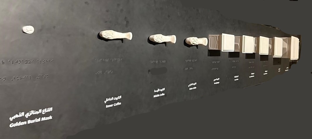 At the Grand Egyptian Museum, within the Tutankhamun galleries, a panel was created to recognize the team involved in the discovery of the tomb. It also tells the story of a young boy, Hussein Abdul Rasoul, who was about 12 years old in 1922. While carrying a drink at the excavation site, Hussein dropped it and struck a stone. He then alerted Howard Carter, marking the first step toward the discovery of Tutankhamun’s tomb.
